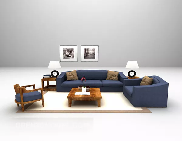 Description: Blue Wooden Sofa Furniture 3d model in .Max files format