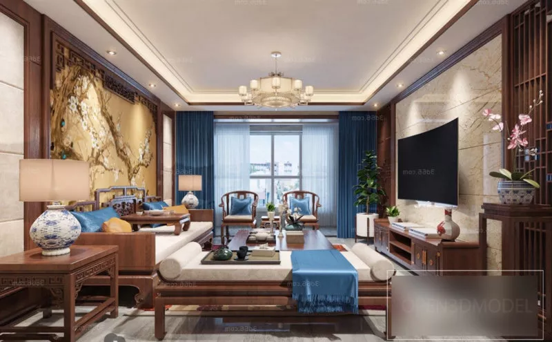 Apartment, Chinese, High, Interior, Living, Living Room, models, quality, retro, Room, scene, scenesReport model: