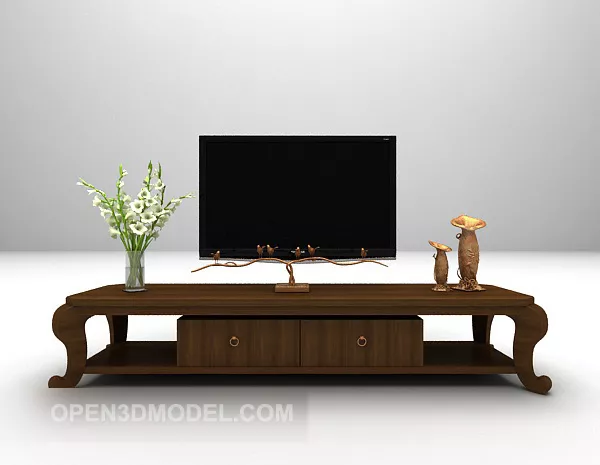 Elegant Brown Wooden Tv Cabinet 3D Model