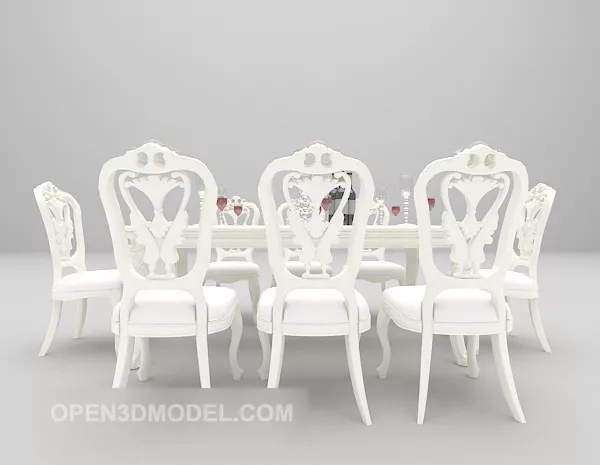 Description: European White Wooden Dining Table Chair 3d model in .Max files format