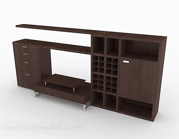 Home Brown Wooden Tv Cabinet 3D Model