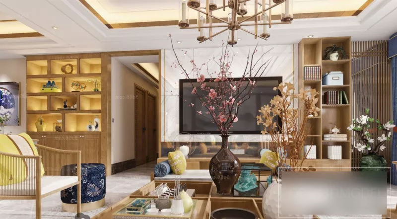 Description: Modern Living Room Interior Scene With Decorative Cabinet 3d model in .Max, .Vray files format