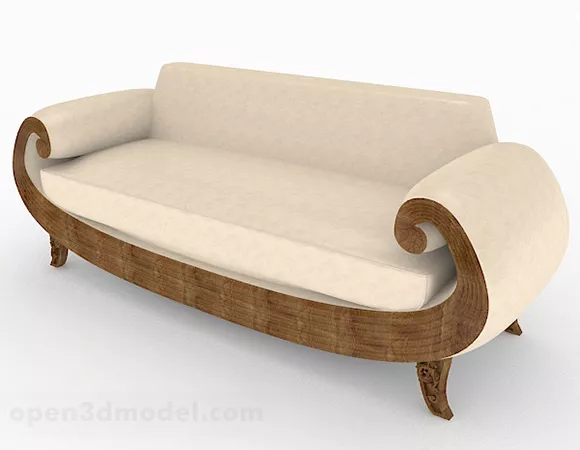 Yellow Wooden Two-seat Sofa Furniture 3D Model